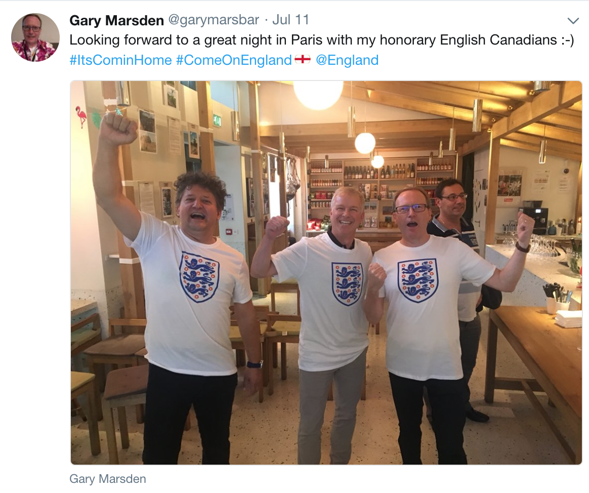 I took this picture before Croatia vs England match - I think there are at least three different nationalities in this picture, make that four if you count the Yorkshireman taking the picture