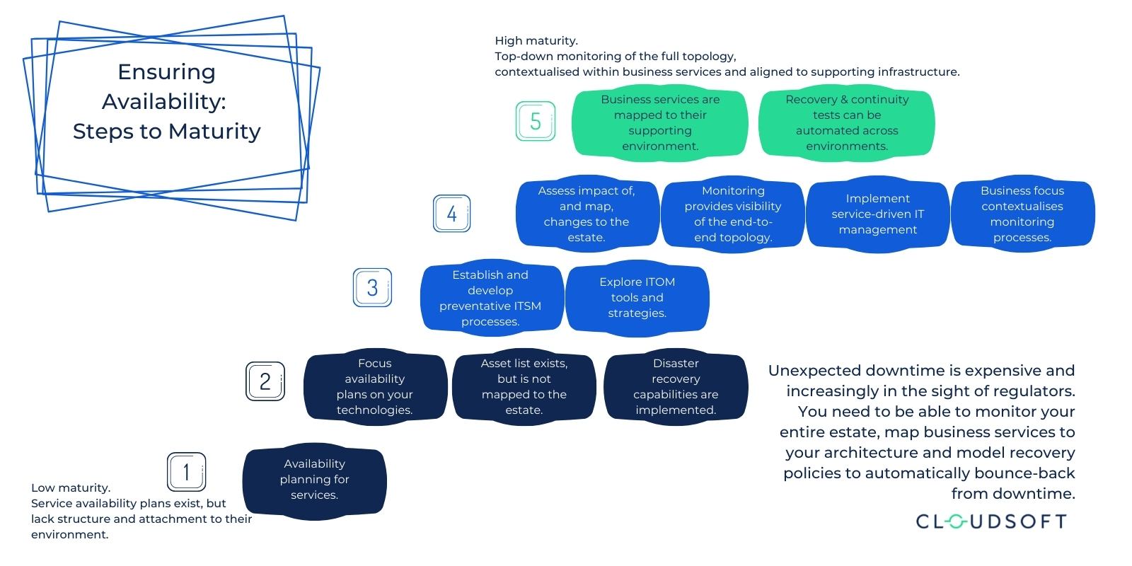 Cloudsoft AMP acts as a ‘Train conductor’, not only mapping and monitoring your estate for full-visibility, but automating comprehensive service and recovery testing and enabling you to map business services to your infrastructure. Read how a Global Bank slashed downtime from 84 hours to just 5 minutes per year, using Cloudsoft AMP.